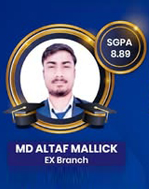 Our Topper Md.Altaf Mallick, a B. Tech student in EX Engineering, has scored with 8.89 SGPA at RITS 8th Semester.